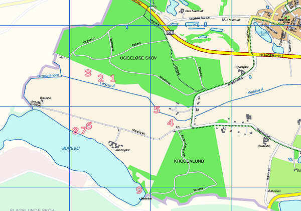 | 4. Man kan også sætte bilen ved parkeringspladsen i Krogenlund og gå langs markerne. | |